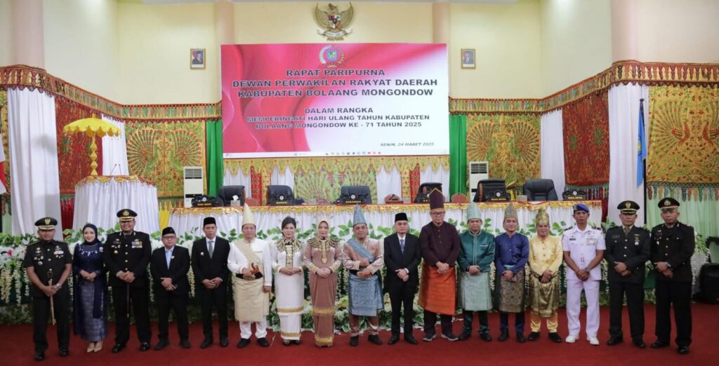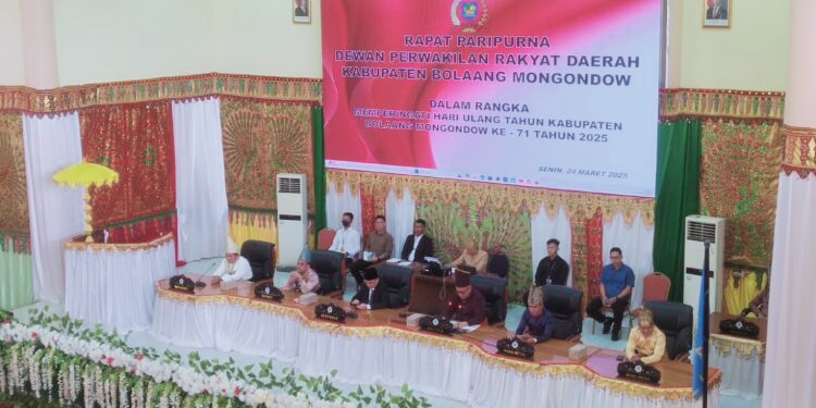 BOLMONG – Dewan Perwakilan Rakyat Daerah (DPRD) menggelar rapat paripurna istimewa peringatan Hari Ulang Tahun (HUT) Kabupaten Bolaang Mongondow (Bolmong) ke-71, Senin 24 Maret 2025.