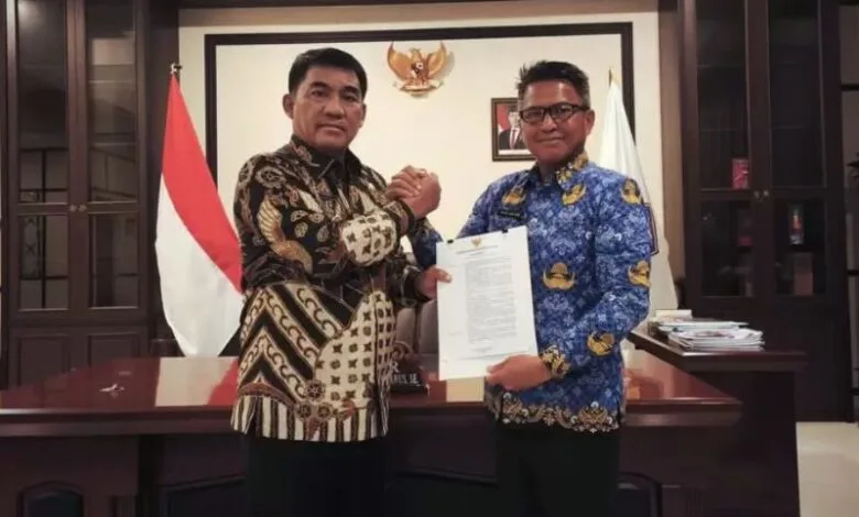 BMR – Gubernur Sulawesi Utara (Sulut) Yulius Selvanus menyerahkan Surat Keputusan (SK) Pelaksana Harian (Plh) Sekprov Sulut kepada Tahlis Gallang, SIP, MM. Kamis, 17 April 2025.